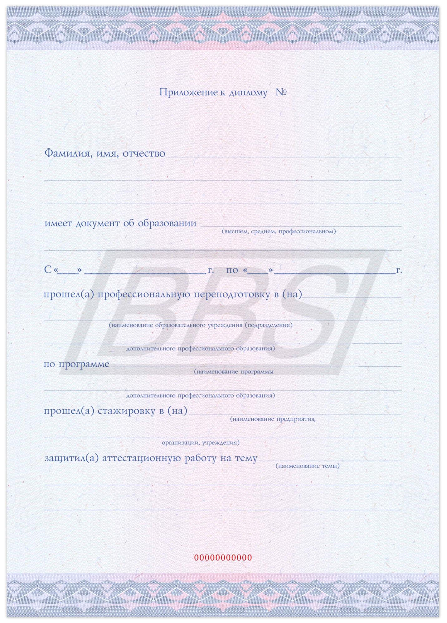 Приложение к диплому о профессиональной переподготовке, Вид 5 (290*205) (арт. 31040)