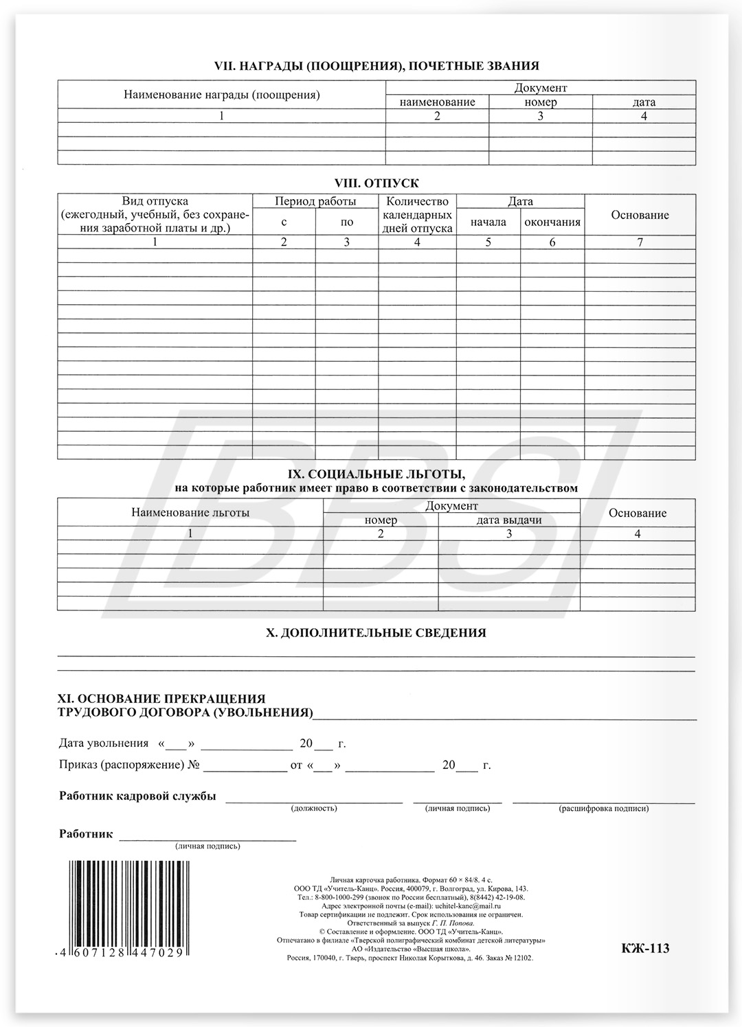 • Личная карточка работника (унифицированная форма Т2) (арт. 72001)
