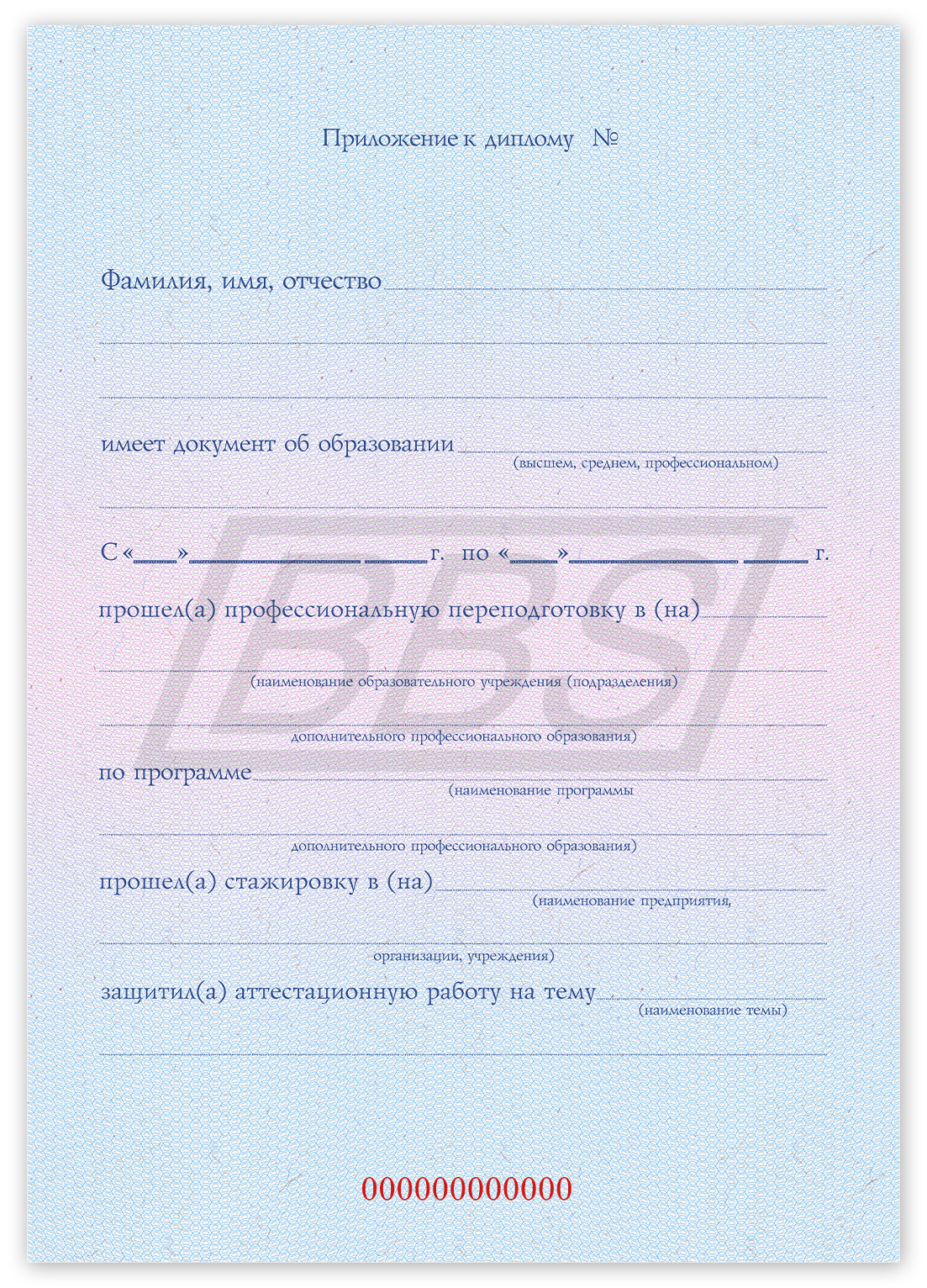 Приложение к диплому о профессиональной переподготовке, Вид 5 (290*205) (арт. 31040)
