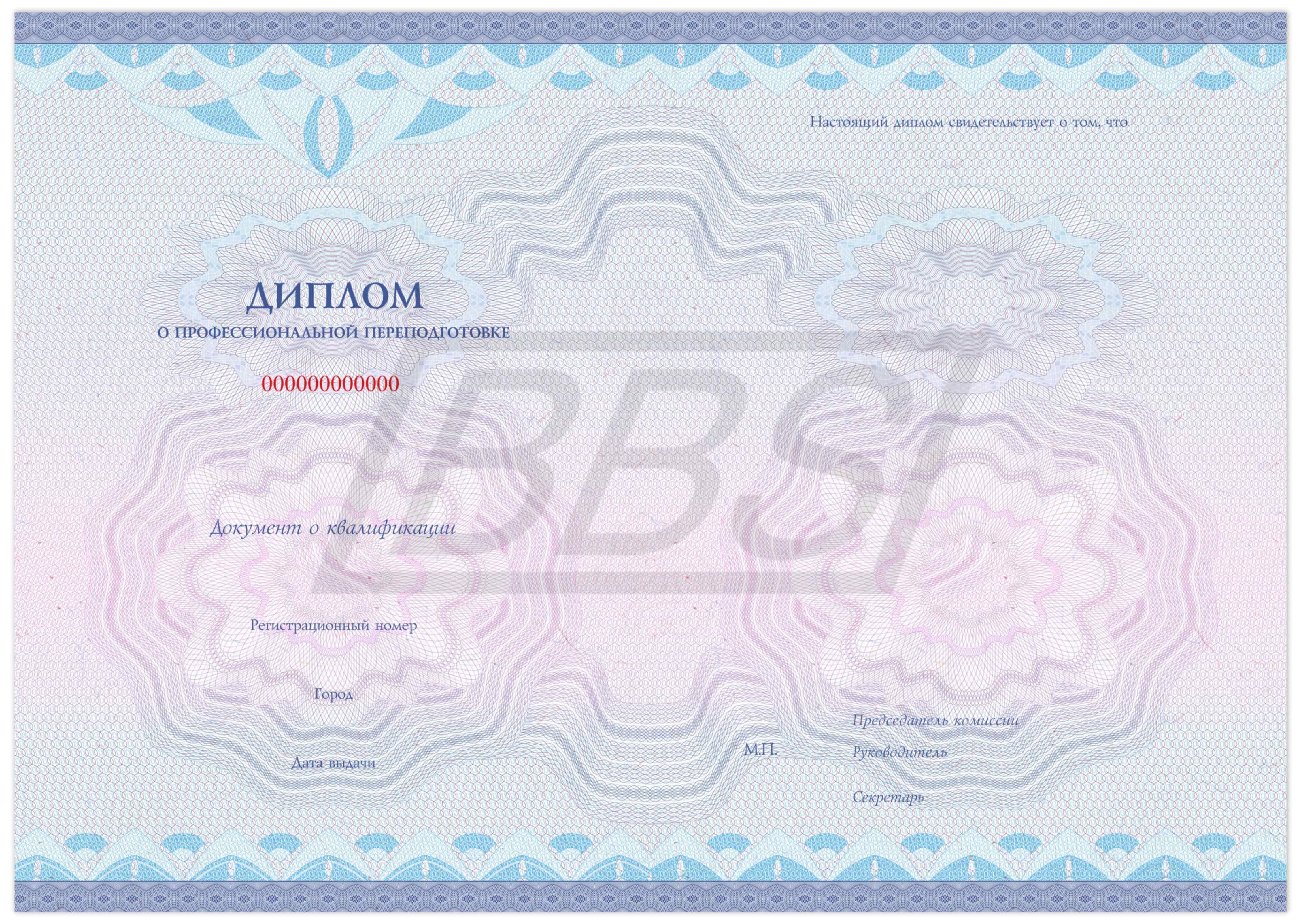 Бланк диплома о профессиональной переподготовке "Универсальный" (арт. 31001):