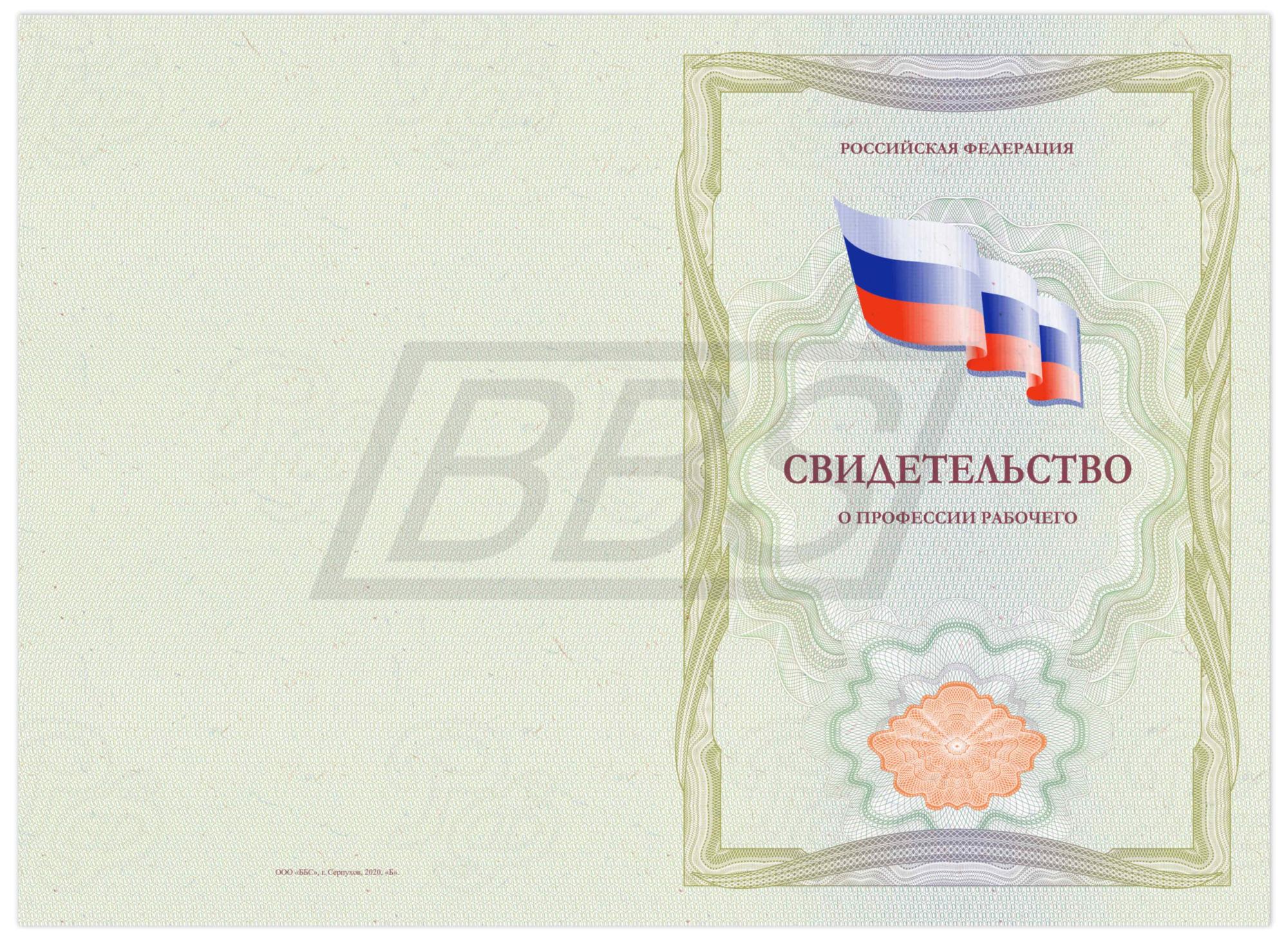 Бланк свидетельства о профессии рабочего, должности служащего (БЕЗ ФЛАГА) (арт. 42023)