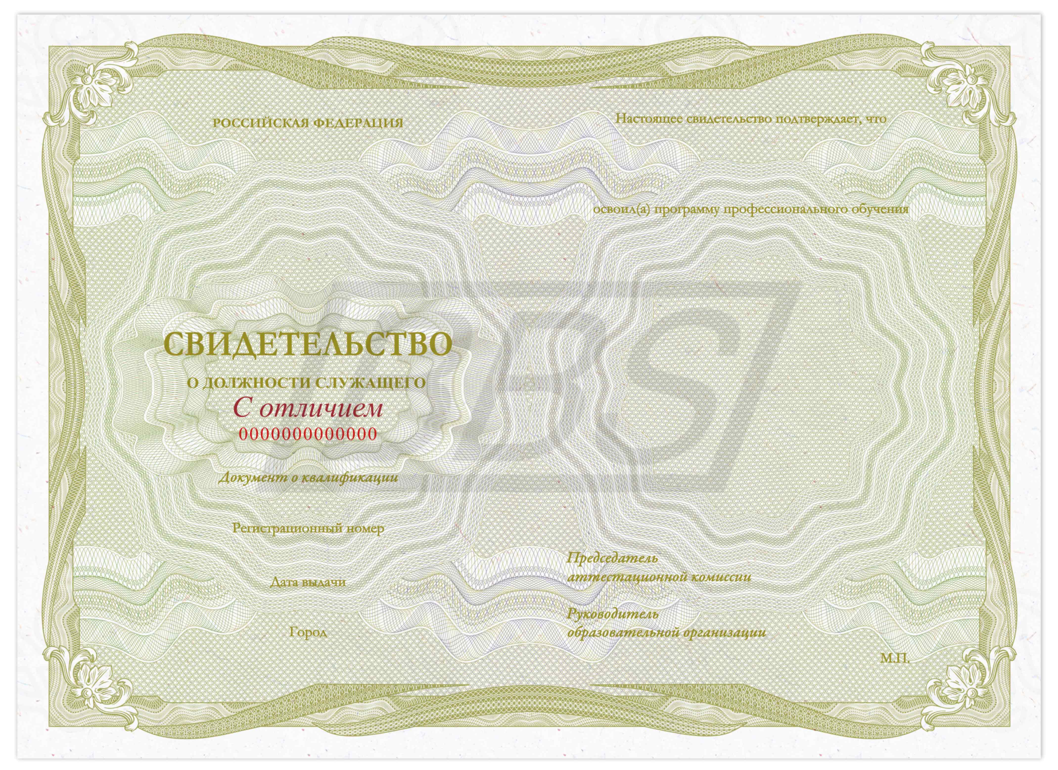 Бланк свидетельства о должности служащего (с отличием) (арт. 42013)