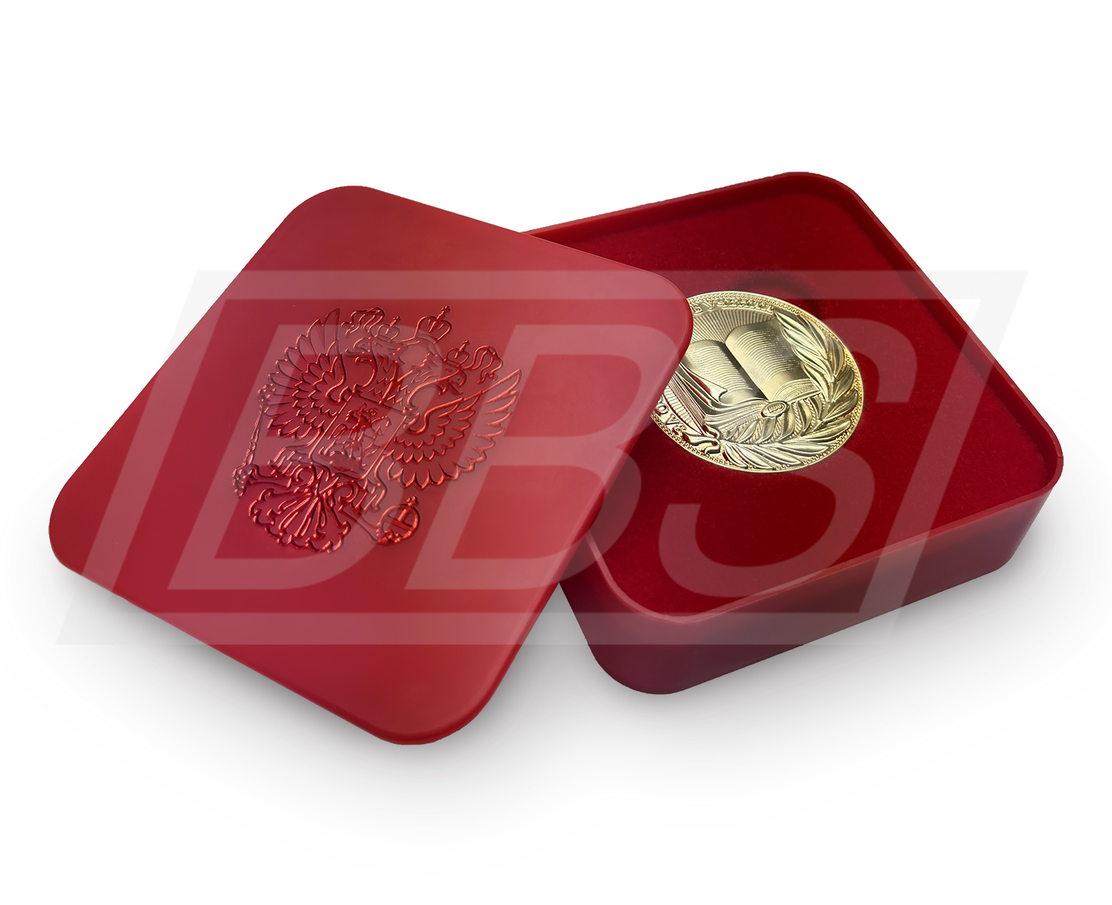• Бархатный футляр для золотой медали, с ложементом и углублением под медаль (арт. 61007)
