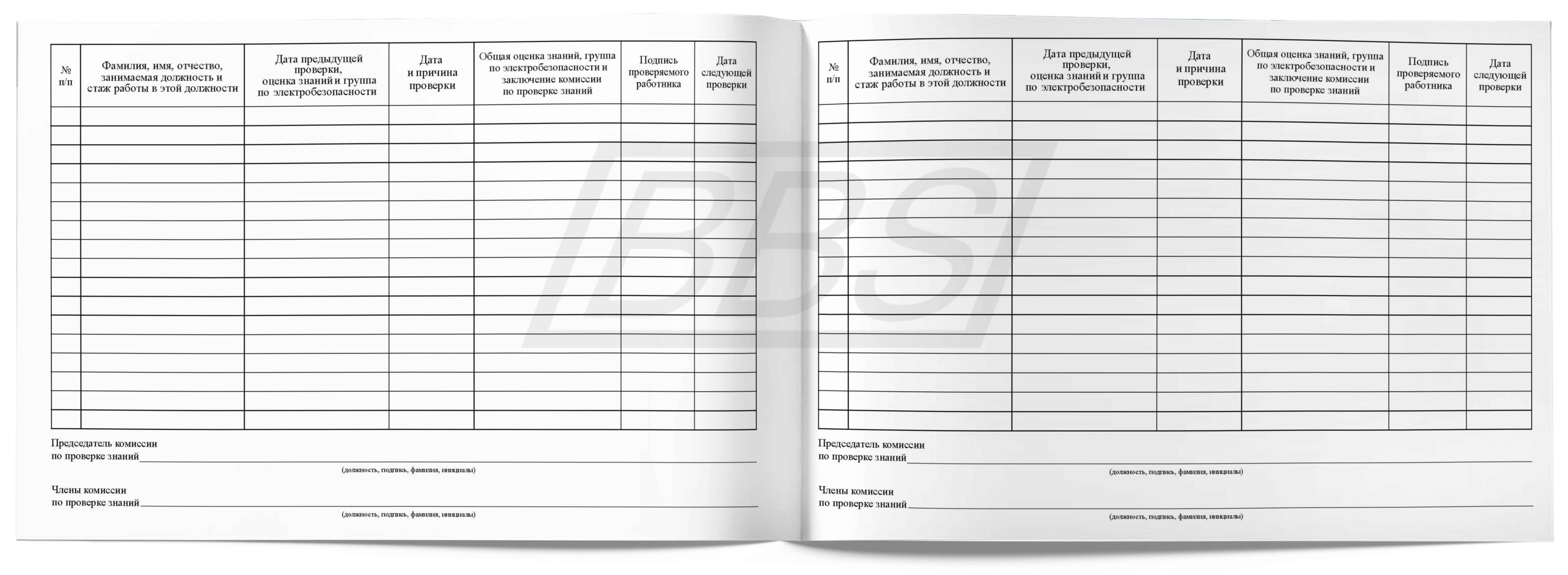Журнал проверки знаний по электробезопасности со II по V группу