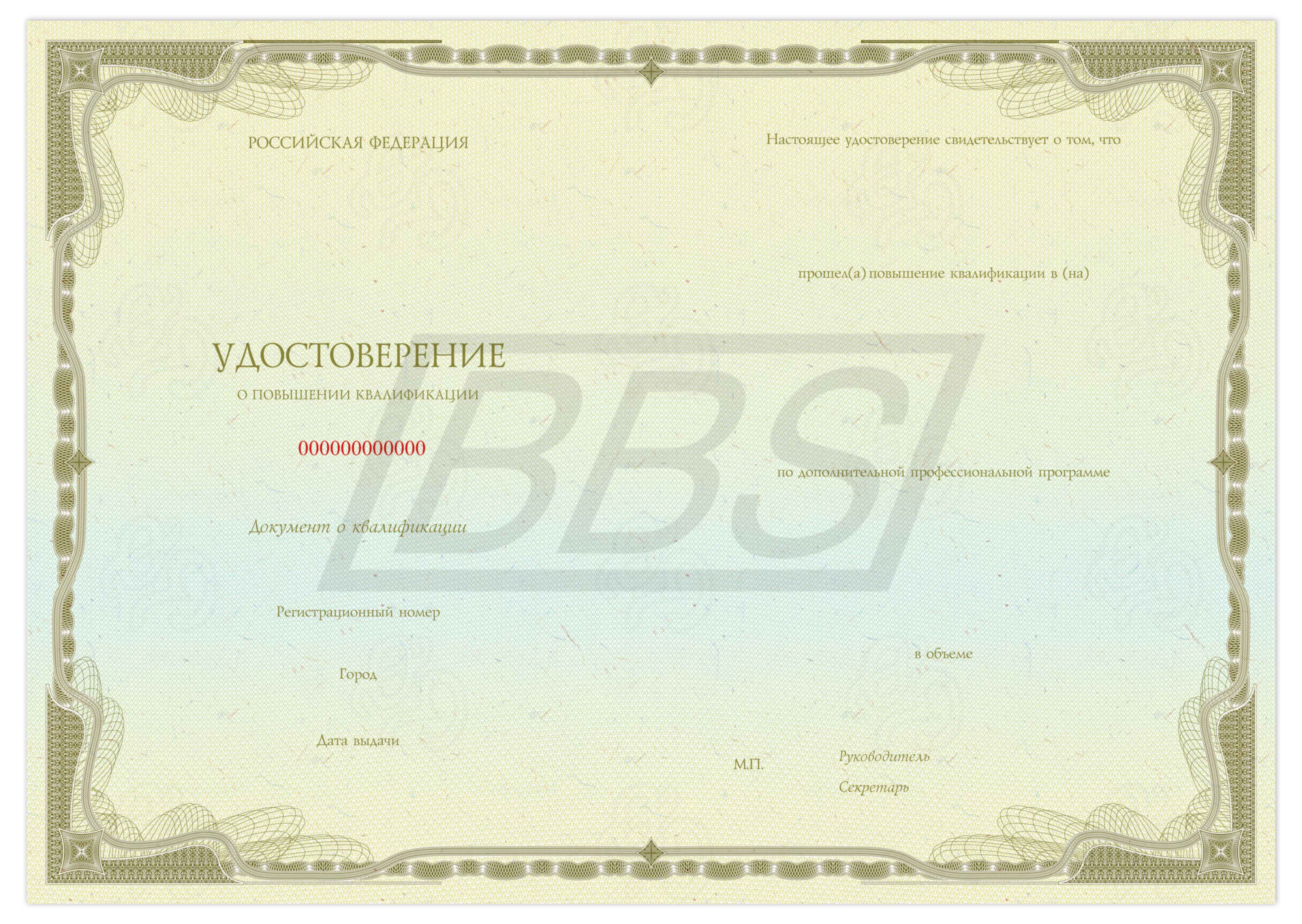 Бланк удостоверения о повышении квалификации без флага (арт. 32001) (далее – Бланк) является защищённой от подделок полиграфической продукцией уровня «Б» и изготавливается по заказу образовательных организаций.