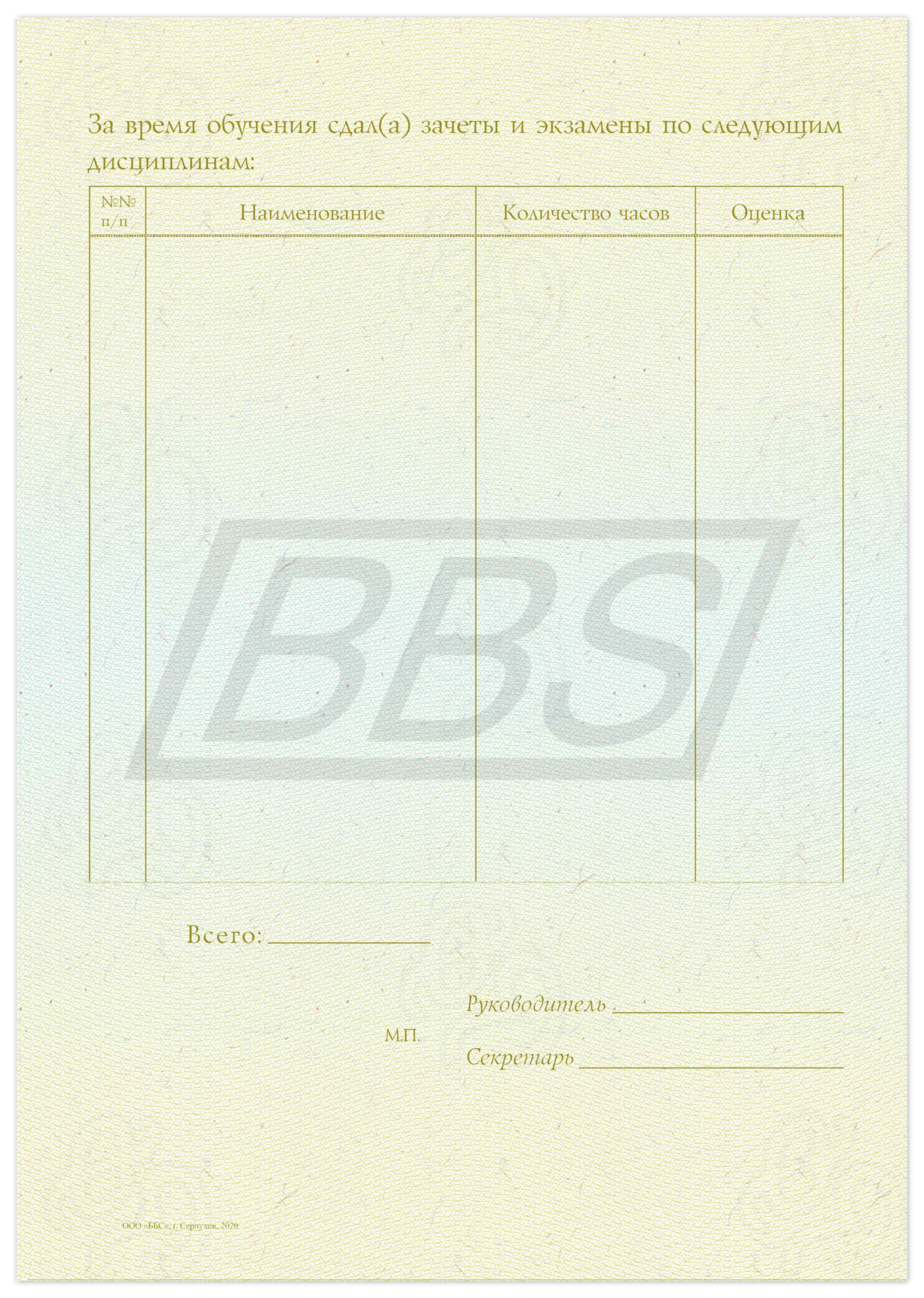 Бланк приложения к удостоверению о повышении квалификации, формат А5 (арт. 32004)